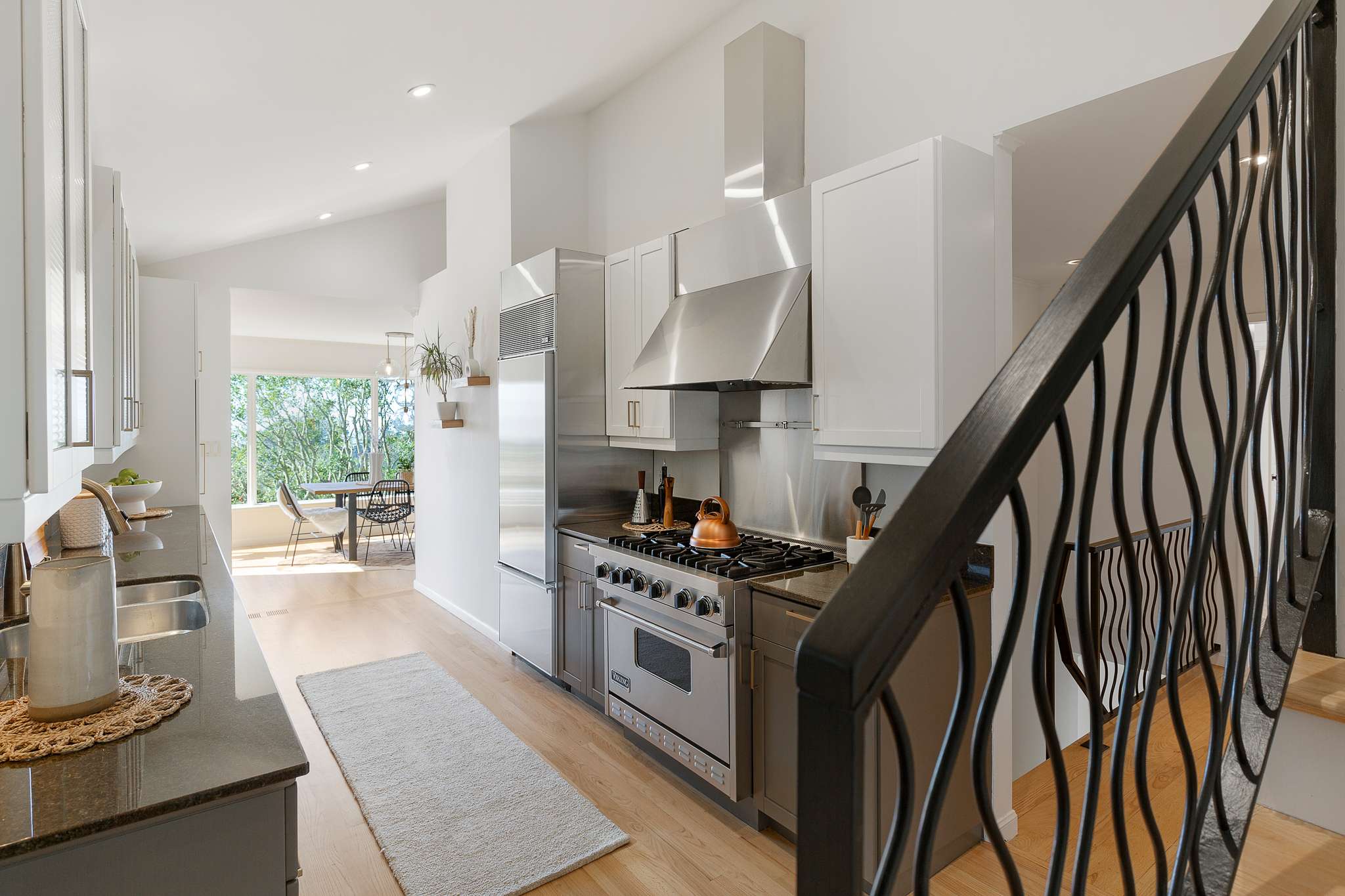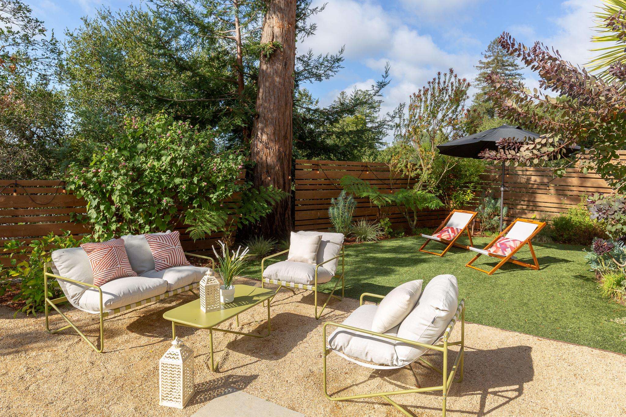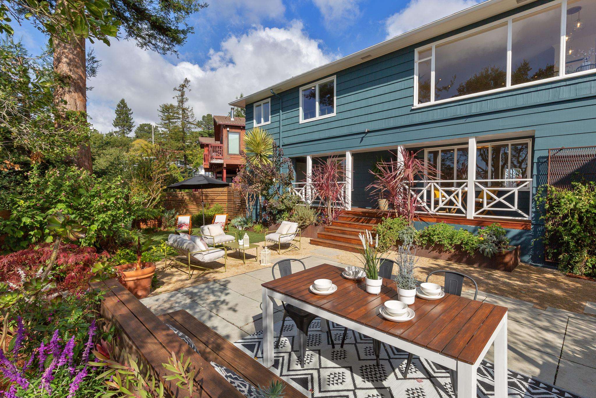 Three bedrooms and two-and-a-half baths offer room for everyone. The downstairs family room opens to a charming backyard with two handcrafted trellises and planters designed by the local artist, an ideal spot for morning coffee, weekend hangouts, or relaxing under the sunset glow.